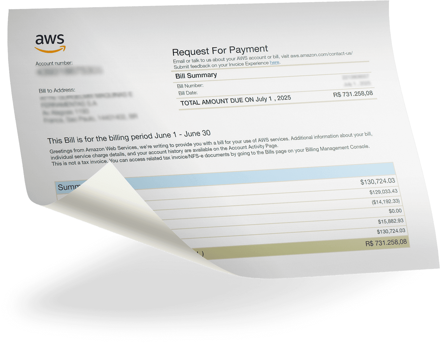 Na fatura AWS
